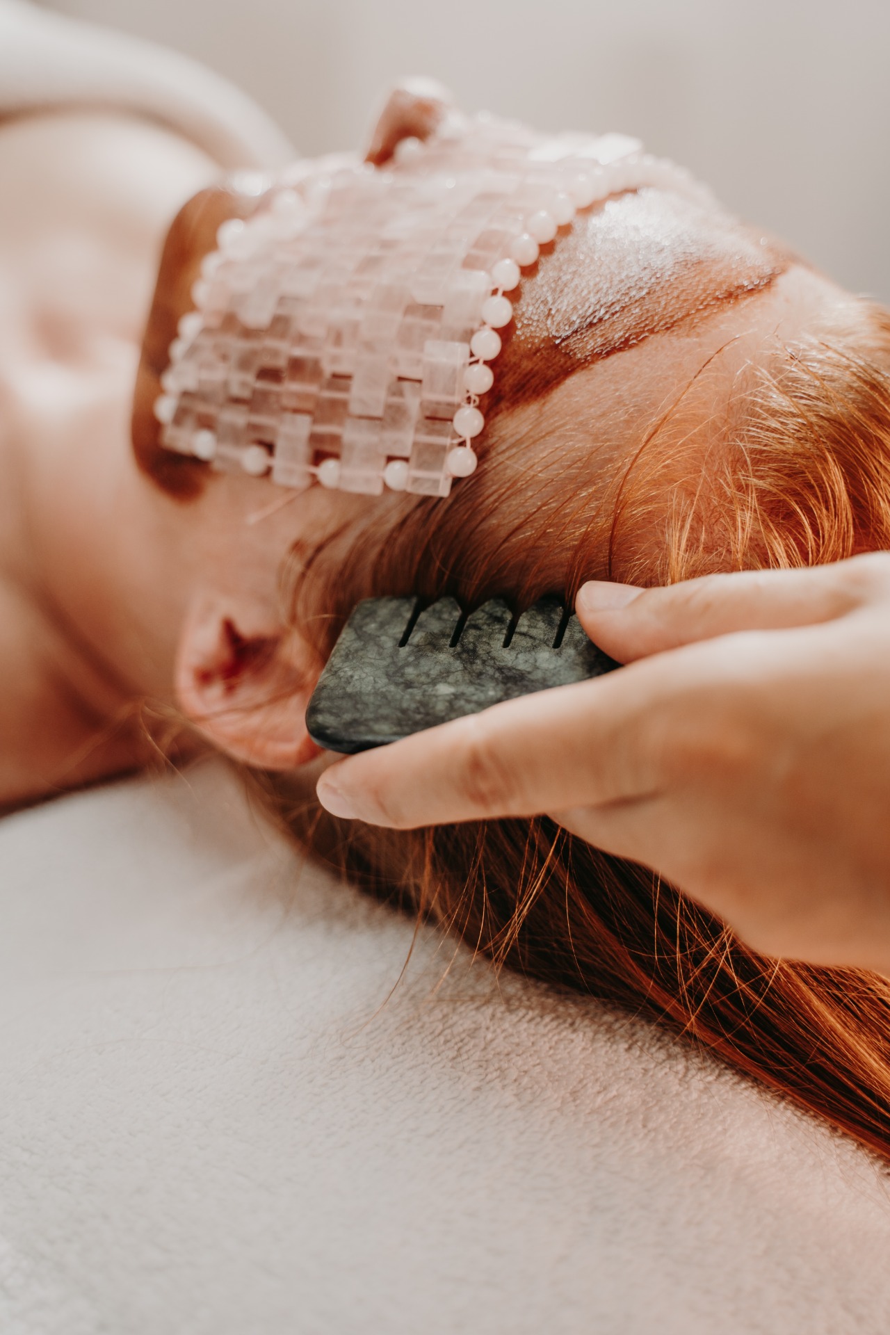 Během rituálu kombinuji různé masážní techniky pro dosažení zdravé a zářivé pleti.