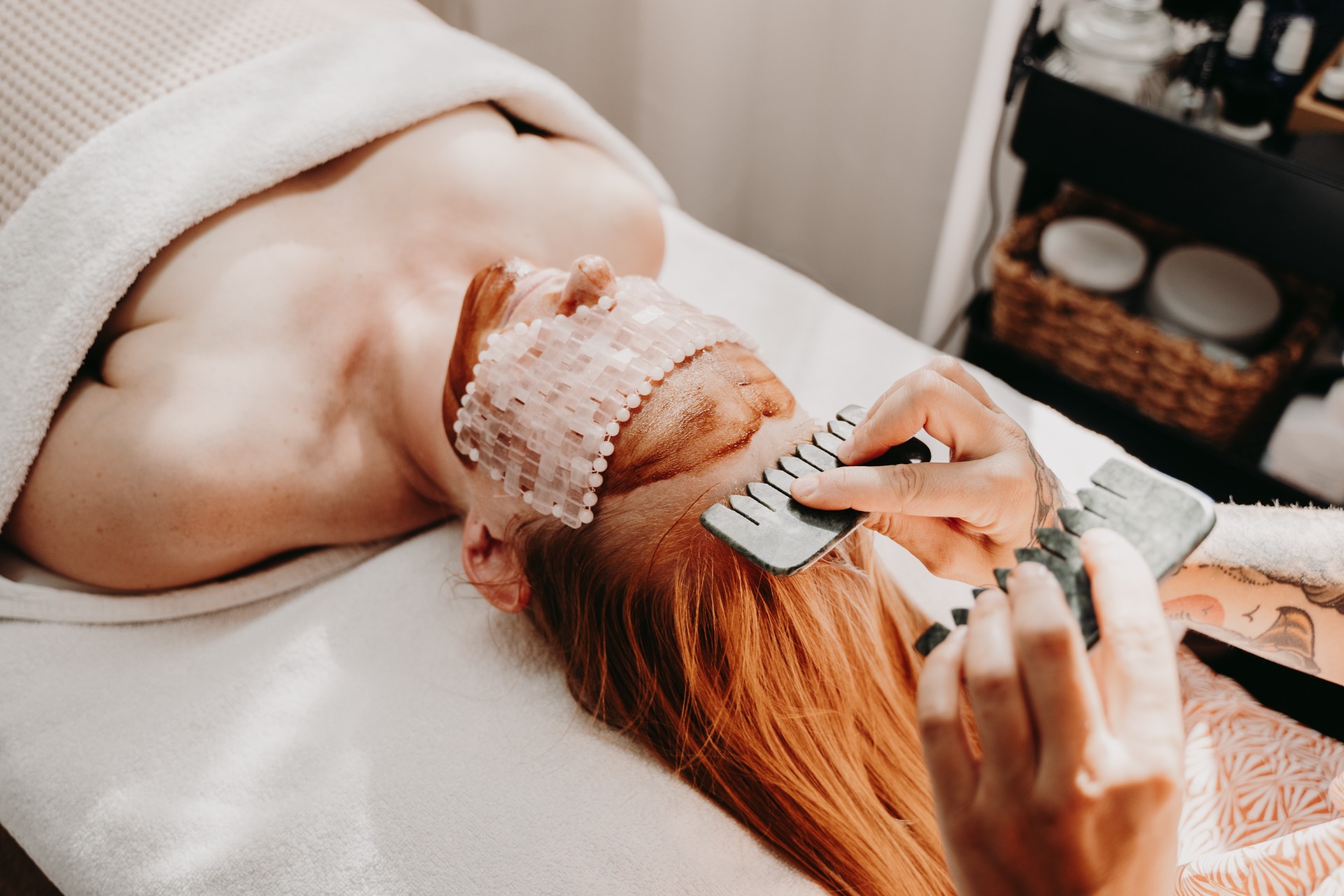 Čištění pleti, napařování teplými ručníky, detoxikační masáž, jemný peeling, maska, maska z minerálního kamene, masáž hlavy guasha hřebeny, masáž rukou, koshi zvonkohra, zapracování séra, masáž face rollerem, guasha masáž, závěrečná péče a masáž.